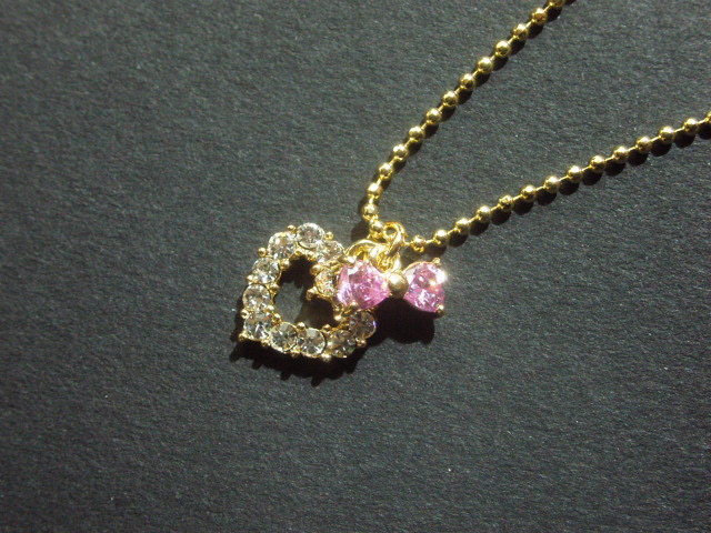 ジルコニアりぼん&オープンハート・レディースネックレス