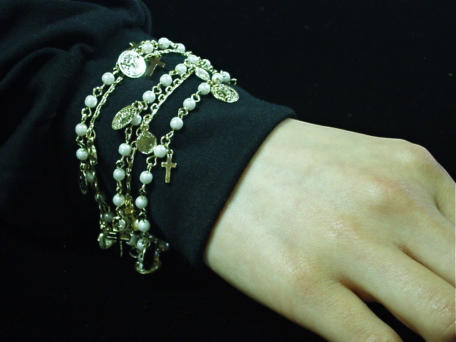 クロス、コインパーツがじゃらっと下がった5連ブレスレットです♪