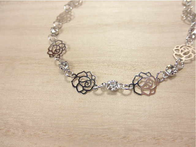 透かし薔薇モチーフパーツとストーンが繋がったブレスレットです♪