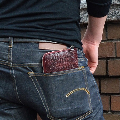 味わいのあるカラーで高級感溢れるイレギュラーな編み込みメッシュ・ラウンドファスナーのロングウォレット★ カードは8枚入るスペース+お札入れは3箇所♪ ファスナー仕様の小銭入れ付き!! 更にポケットも2箇所あり、収納力抜群です☆ ファッションセンス抜群のウォレットです。 自分へのご褒美・プレゼントにも大変喜ばれます。