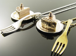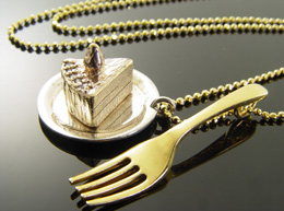 6分の1にカットされたケーキにフォークを添えたユニークなデザインネックレス。