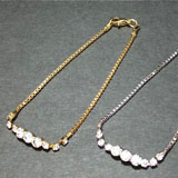 | 2連のテニスブレスレットの2ヶ所を、あえて留める事で絡まりにくくしたので綺麗なラインが保てて手元を美しく飾ってくれます・・☆ |