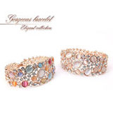 | 色鮮やかなフラワーがキラキラ輝く♪華やかブレスレットです。片手でも簡単に取り外せて使いやすい♪お出掛けにオススメです。 |