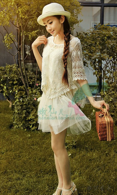 フラワーレースのトップスと、キャミチュールワンピースでフェミニン気分満点なSETワンピース♪