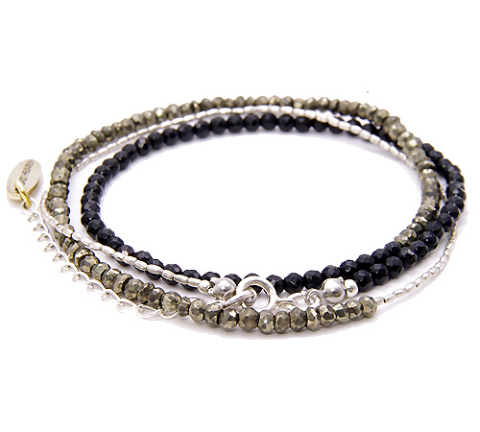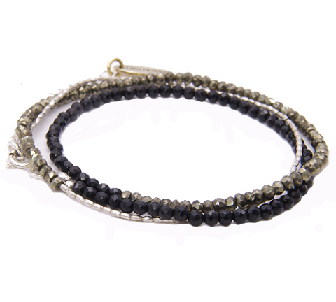 オニキスビーズ、シルバービーズ、パイライトビーズを組み合わせた3連仕様のブレスレット。ネックレスとしても使える2wayタイプです。 自分へのご褒美・プレゼントにも大変喜ばれます。 LAST HEAVEN最高傑作の逸品です。