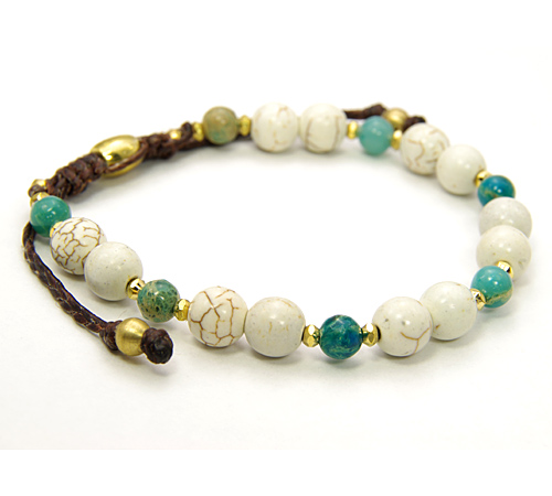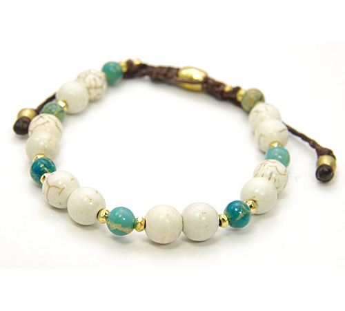 編みこみのワックスコードに8.5mmのホワイトターコイズビーズとメタルパーツ(真鍮)、オパールビーズをバランスよく配置したブレスレット。 エンド部分で長さの調整が可能です。 自分へのご褒美・プレゼントにも大変喜ばれます。 LAST HEAVEN最高傑作の逸品です。