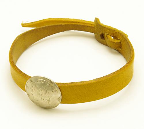 国内の革職人が手作業で仕上げたレザーブレスにレプリカコインコンチョをセットしたシンプルなレザーブレスです。