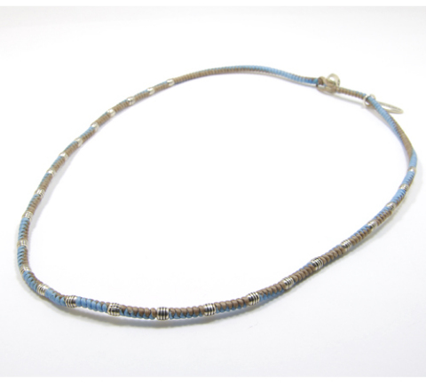 カレン族のシルバービーズをワックスコードで編み込んだネックレス。