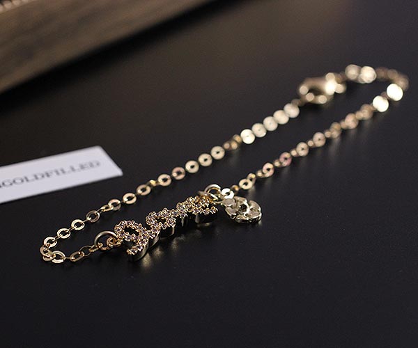 ★14KGF★14金ゴールドフィルド/LOVEブレスレット/揺れるフラワーチャーム