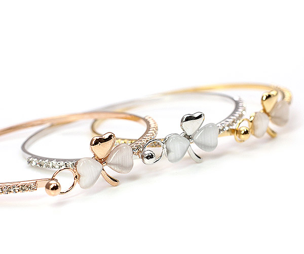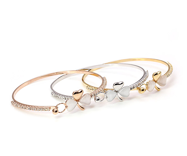 ★簡単装着★クローバーのブレスレット♪キラキラ華やかでエレガントな三つ葉の腕輪/