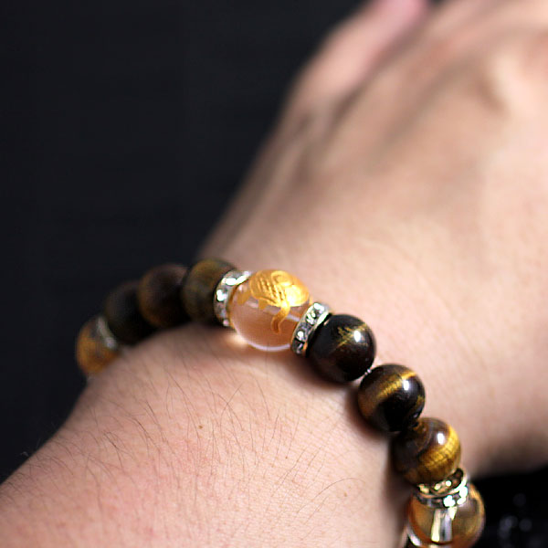 【風水四神獣】 大粒14mm虎目石!四神獣タイガーアイブレスレット/ロンデル使用!