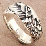 | 羽をぐるりと巻いた繊細でクールな存在感を主張するシルバーリング。中央のイーグルが高級感をアピールする逸品。 |
