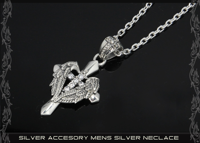 シルバーの鏡面を存分に発揮した本物志向のネックレス あなたを彩るクールなシルバーアクセサリーでキメル★ クロス×羽×ジルコニアをセットしたラグジュエリー天使です。 クロスの天使の羽をまとい、白銀の美しいクロスの羽に キラキラのジルコニアをセットした正に ジュエリーに値する逸品の本物志向のネックレスです。