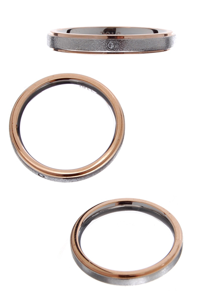 細身の中にもピンクゴールドの艶とマット仕上げのスチールとのコントラストを表現したエレガンズデザインです。さり気なく決まるキュービックジルコニアで1ランク上のデザインリング。