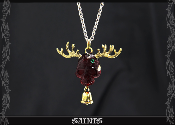 特殊なカラー樹脂で作られた、大人気のスカルネックレスに