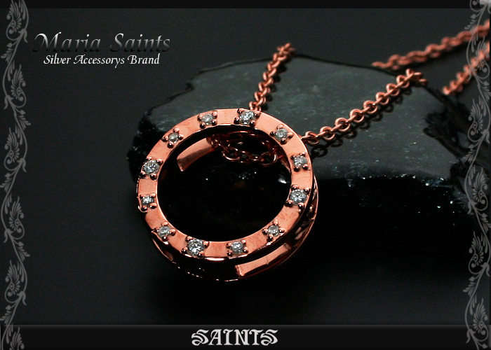 サークル状のペンダントトップの片面にはキュービックをあしらい