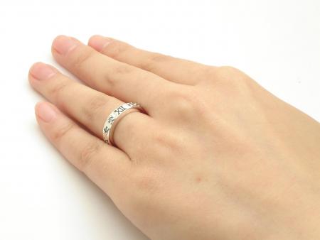 時計をモチーフにデザインされた時空リングにはジルコニアをセット。