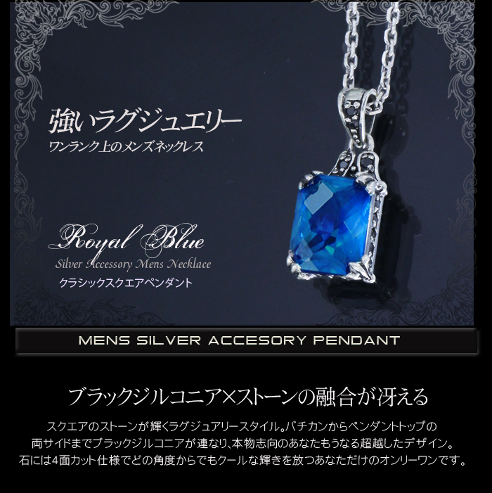 バチカンからペンダントトップ両サイドまでびっしりとブラックジルコニアをセッティングしているので、中央のストーンと野融合がとてもラグジュアリーな仕上がりです。スクエアの大振りストーンには多面カットが施されており、あらゆる角度からもキラリと輝くクールな仕様で存在感も抜群!あなたもラグジュアリーに胸元に決めてみませんか?