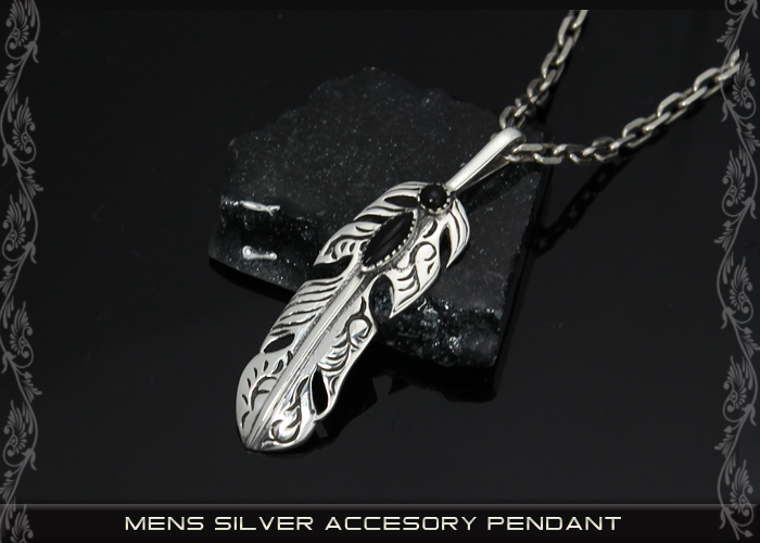シルバーの鏡面を存分に発揮したビックサイズの フェザー全体にトライバルを刻み込んだクールなフェザーにオニキスを2連でセット! シックで目の覚めるような男のクール感を胸元に一点付けで 激モテの定番アイテムのシルバーアクセサリーです。