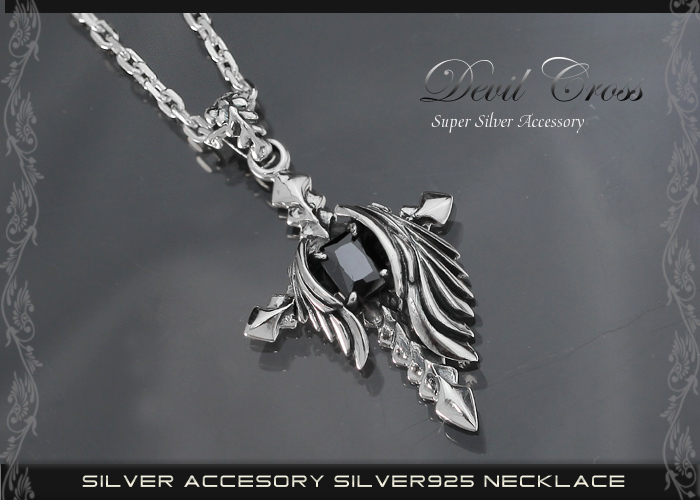 シルバーの鏡面を存分に発揮した本物志向の悪魔ネックレス クロス×羽×ブラックジルコニアをセットしたラグジュエリー悪魔です。 クロスから悪魔の羽まで全体をいぶしでシルバーにコントラストを付けた クールでワイルド感溢れる悪魔です。 クロスに悪魔の羽をまとい、大振りのブラックジルコニアで 圧倒的存在感を演出したラグジュアリーな悪魔ネックレス。