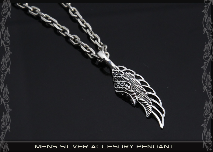 シルバーを3層に段重ねして羽のボリューム感を追求! いぶしでほどこした悪魔の羽がリアルに表現された逸品。 ブラックジルコニアをセットしてダーク感を一層演出したクールな悪魔ペンダント。
