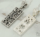 アラベスクがスクエアに絡み付く繊細でクールなスタイル。正にカリスマの称号を与えられた洗練されたシルバーペンダント |