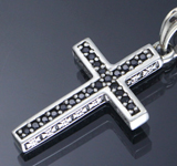 中央のブラックジルコニアが冴える極上のクロスシルバーペンダント |