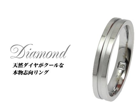 天然ダイヤモンドをセッティングしたシンプルでクールなメンズアクセサリーリング。