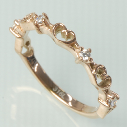 オープンハートのピンクゴールドPVDのキュートな美しい地金にキュービックジルコニアのキラキラ石が美しい女性の指元を輝かせるジュエリーリングです。 大人の手元に繊細で華やかな輝きがゴージャス感溢れる必須アイテム♪ 女性らしさをアップする美を醸し出す洗練されたジュエリーリングです。