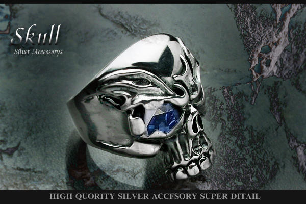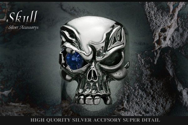 中指、又は人差し指に一点付けでアピールする抜群の存在感のスカルリングです。