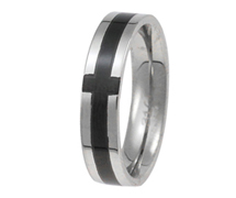 | ブラックとシルバーPVDの輝きを存分に発揮した煌きに洗練されたフォルムが魅力のクロスステンレスリング。 |