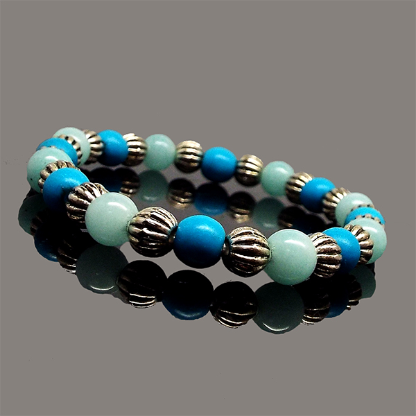 明るい未来を手に入れる☆ ターコイズで一歩踏み出す勇気と自信を与え、 アマゾナイトとの組み合わせで夢の実現をサポートします☆ ファッションセンス抜群のパワーストーンブレスレットです。 自分へのご褒美・プレゼントにも大変喜ばれます。