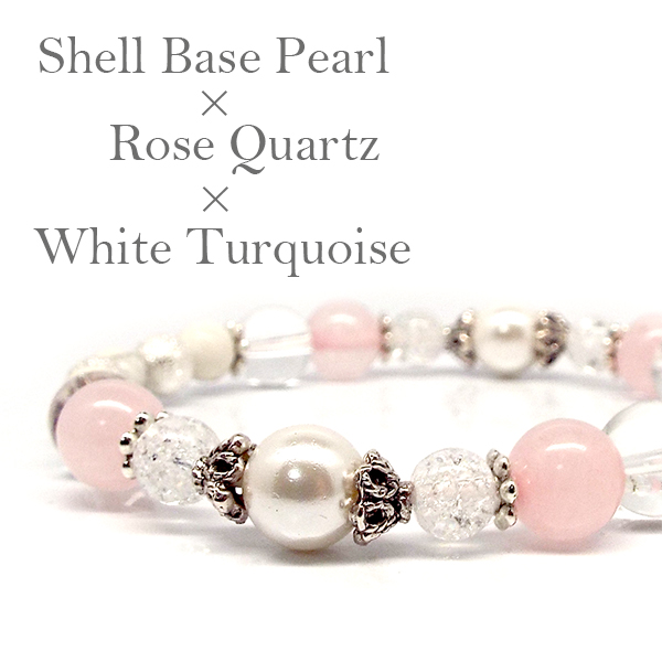 手元をエレガントにあざやかに彩るデザインブレスレット☆ さりげなく可愛らしさを出したい時に ぜひ、着用していただきたいアイテム☆ シェルパールがアクセントカラーの小粋でフェミニンな雰囲気があります♪ ファッションセンス抜群のパワーストーンブレスレットです。 自分へのご褒美・プレゼントにも大変喜ばれます。