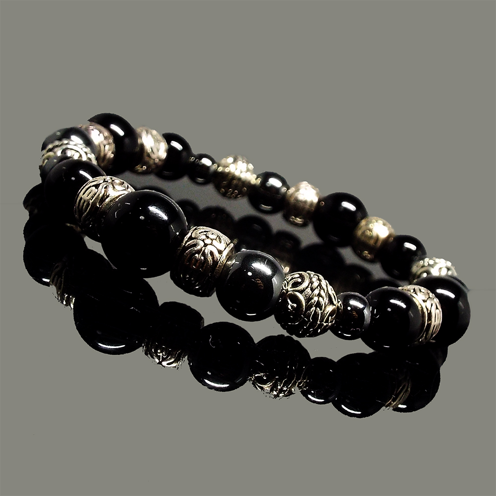 ・天然石 オニキス ヘマタイト メタルパワーストーンブレスレット