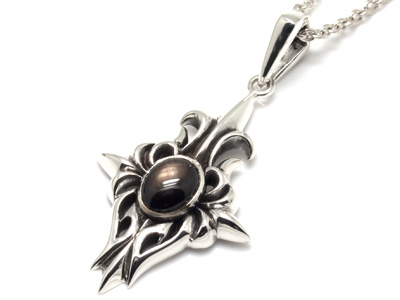 シンメトリーなモチーフにブラックスターサファイアがセットされたペンダントです。シンプルかつクールなカンの形もポイントです。 先進的なイメージを主張する存在感抜群のシルバーペンダントです。 プレゼントやギフトにも大変喜ばれる本物志向の シルバーアクセサリーブランドRoyal Justyのメンズシルバーペンダントはどんな装いにも キマルのであなただけのオンリーワンを発揮していろいろな場面で大活躍してくれます!