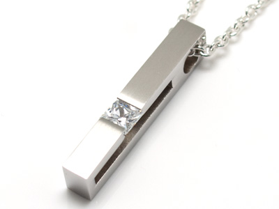 バータイプのボディにスクエアカットのジルコニアが光るペンダント。ステンレスの質感を生かしたシャープなデザインです。医療用器具などにも使用されているサージカルステンレスで作成されたアクセサリーは、人体に対して金属アレルギーを起こしにくい為、アレルギー体質の方にもカラダに優しい 今最も人気の高いサージカルステンレスペンダントです☆ プレゼントやギフトにも大変喜ばれる本物志向の シルバーアクセサリーブランドRoyal Justyのステンレスペンダントはどんな装いにも キマルのであなただけのオンリーワンを発揮していろいろな場面で大活躍してくれます!
