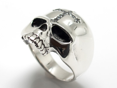 重量感のあるスカルリング。額にはクロス状にジルコニアが埋められ、迫力と美しさを兼ね備えたデザインとなっています。シルバーの鏡面を存分に発揮した本物志向のシルバーリングです。